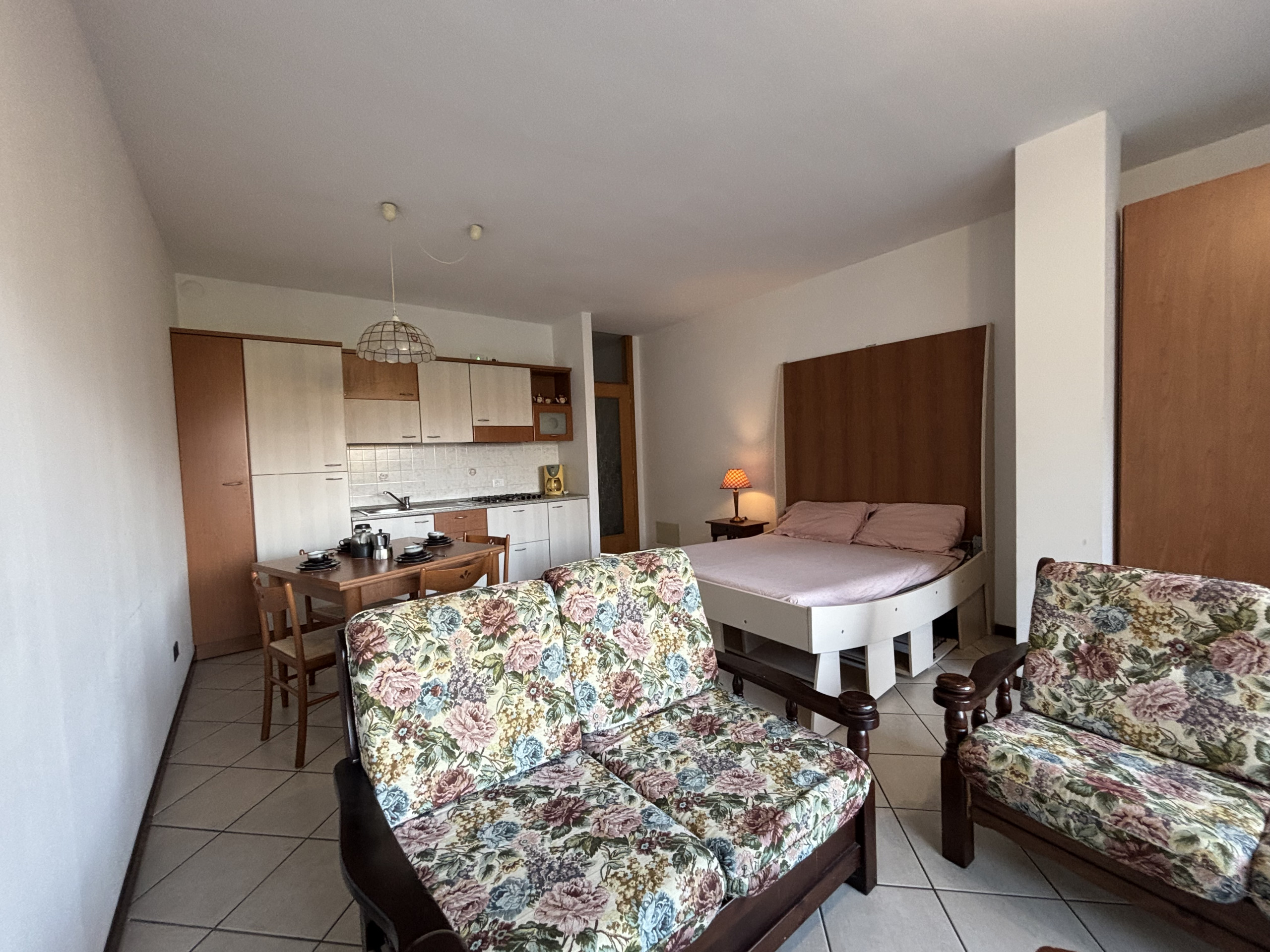 Das Studio Farfalla 1 befindet sich in einer schönen Wohnanlage nur 50 m vom See in Germignaga entfernt im Erdgeschoss. Die 40 m² große Wohnung verfügt über ein geräumiges und helles Wohnzimmer mit einem kleinen Essbereich und einer funktionalen Kochnische, einem Doppelschrankbett und einem kleinen Sofa, das sich ideal als Schlafplatz für ein Kind bis zu 10 Jahren eignet, sowie ein schmales Badezimmer mit Einbauwanne. Der Außenbereich besteht aus einer kleinen Terrasse und einem hübschen privaten Garten. Das Haus hat einen privaten Parkplatz. Farfalla 1 liegt nur wenige Minuten vom Zentrum entfernt, das bequem zu Fuß erreichbar ist und wo sich Restaurants, Geschäfte und alle notwendigen Dienstleistungen befinden.