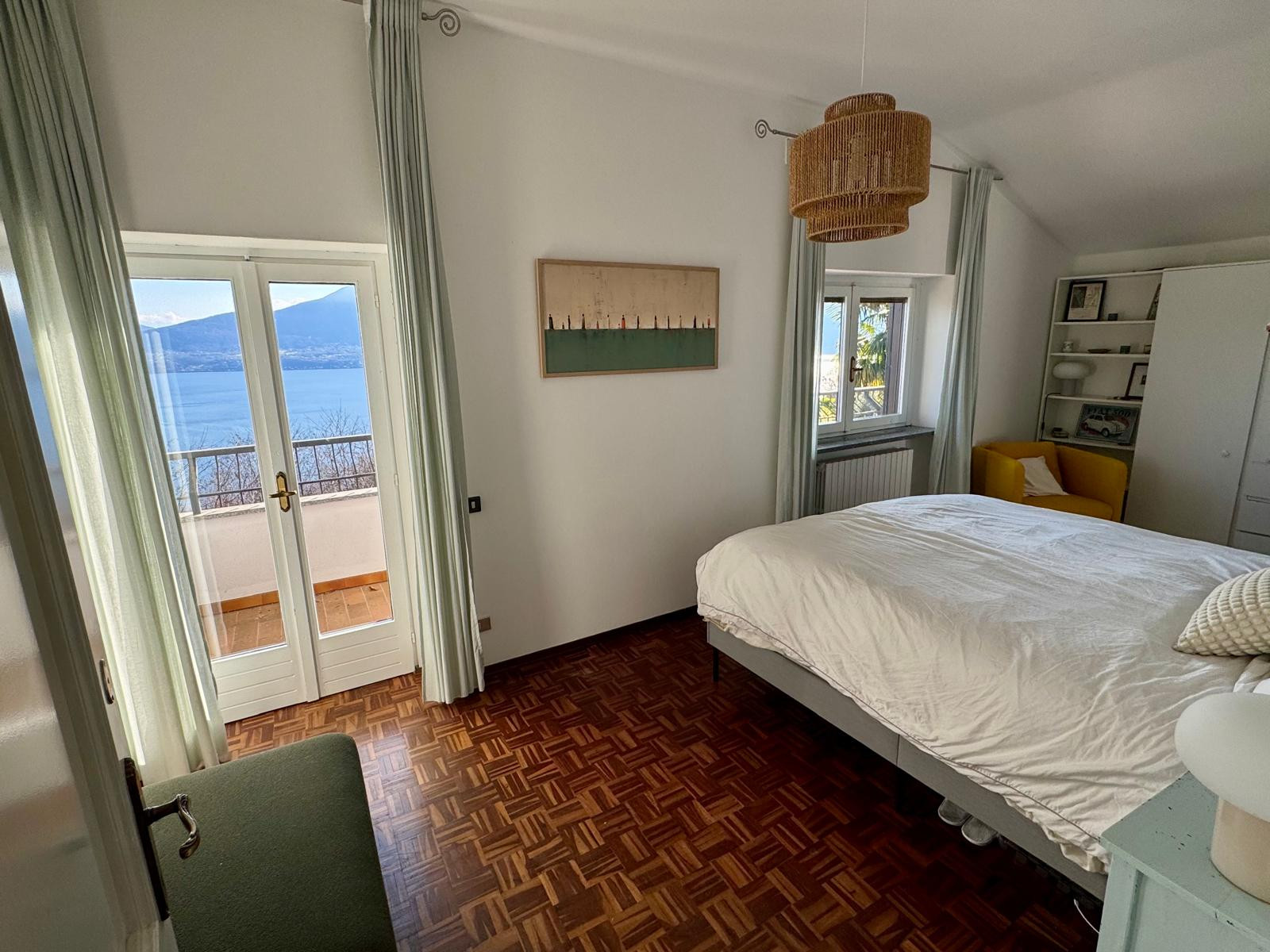 Auf dem ersten Hügel von Oggebbio, nur wenige Minuten von den Stränden von Oggebbio und Cannero Riviera entfernt, liegt die Villa Raggio di Sole. Die Villa ist der ideale Ort, um einen erholsamen Urlaub zu verbringen, dank seiner privaten Swimmingpool und große Außenräume. Im Erdgeschoss führt die Eingangshalle zur Waschküche und zum Service-Bad. Über eine Treppe gelangt man in das Obergeschoss und in den hellen Wohnbereich, bestehend aus dem Wohnzimmer, von dem man von außen auf den großen Balkon gelangt, dem Esszimmer und der Wohnküche mit Zugang zum Außengarten. Vom Wohnzimmer aus bieten die großen Fenster zur Terrasse einen herrlichen Blick auf den See und der Balkon ist ein idealer Ort, um im Freien zu speisen und dabei die wunderbare Aussicht und das Panorama zu genießen. Im Obergeschoss befinden sich vier Schlafzimmer, darunter das Hauptschlafzimmer, mit zwei Badezimmern, eines mit Dusche und eines mit Badewanne, und einem großen Balkon. Ein schöner, terrassenförmig angelegter Garten mit Pflanzen und Blumen umgibt die Villa auf vier Seiten und verleiht dem Haus eine Atmosphäre von Privatsphäre. Es gibt 3 private Parkplätze auf dem Grundstück und sie befinden sich innerhalb der Villa. Verbania mit allen Annehmlichkeiten, Geschäften, Supermärkten, Restaurants und Bars ist etwa 7 Autominuten entfernt. Wenn Sie auf der Suche nach einem Urlaub am Lago Maggiore mit Seeblick, Schwimmbad und viel Platz sind, ist dies die richtige Villa für Sie.