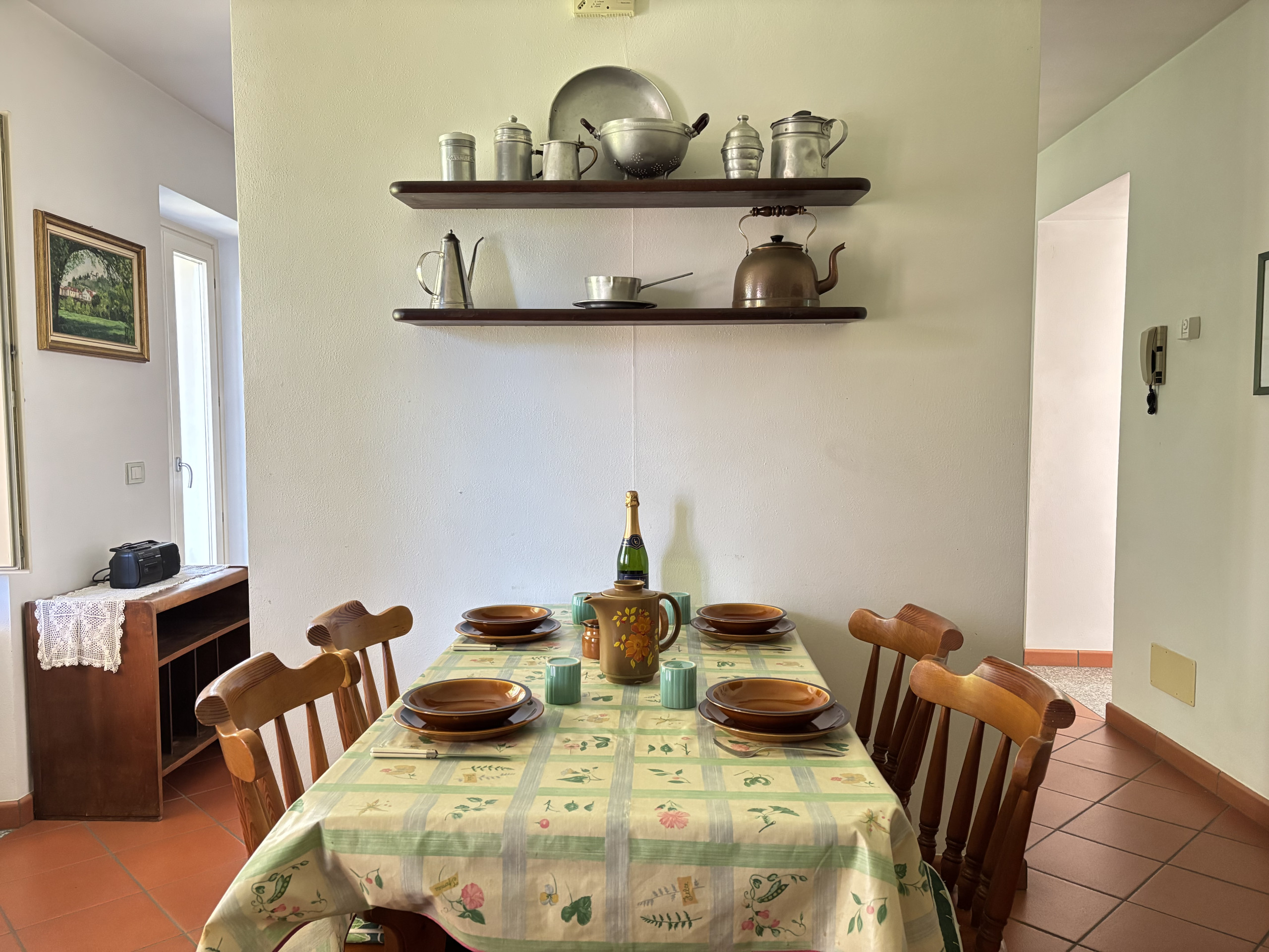 Au rez-de-chaussée d'une petite maison mitoyenne, nichée dans la verdure d'un grand parc avec piscine, non loin du centre de Luino et du lac, se trouve un charmant appartement d'environ 80 m², meublé avec goût et confort, et doté d'un adorable petit jardin privé. L'appartement se compose d'un salon lumineux, équipé d'un joli coin repas avec cheminée, d'une cuisine séparée très fonctionnelle, d'une grande salle de bains et de 2 chambres, pour un total de 5 couchages. L'espace extérieur, en plus du joli petit jardin mentionné ci-dessus, comprend également une terrasse couverte attenante à ce dernier, et la zone qui entoure la piscine, à usage public, déjà mentionnée. La maison dispose également de la télévision par satellite, d'un lave-vaisselle et d'un parking privé. Animaux admis moyennant un supplément.