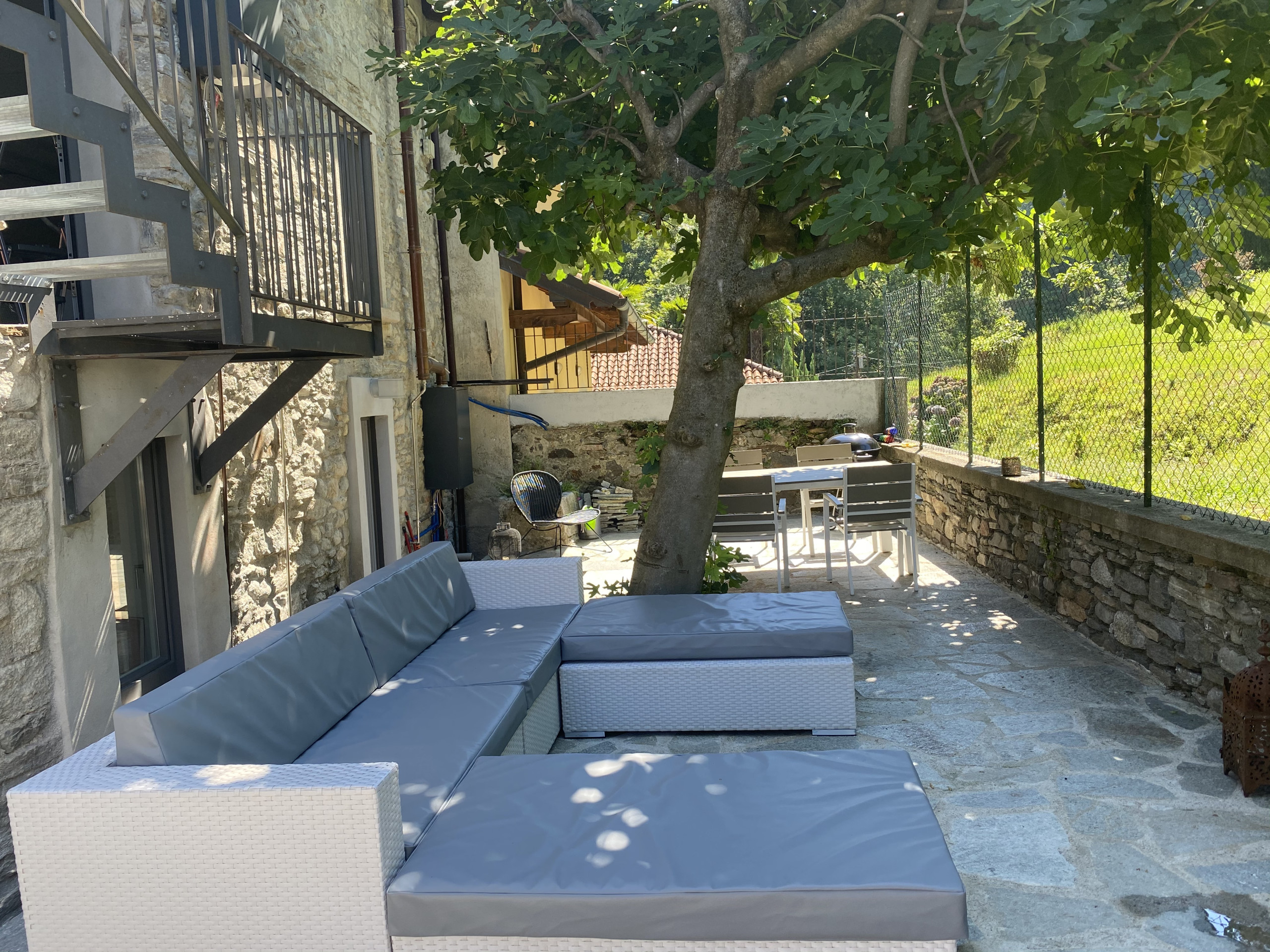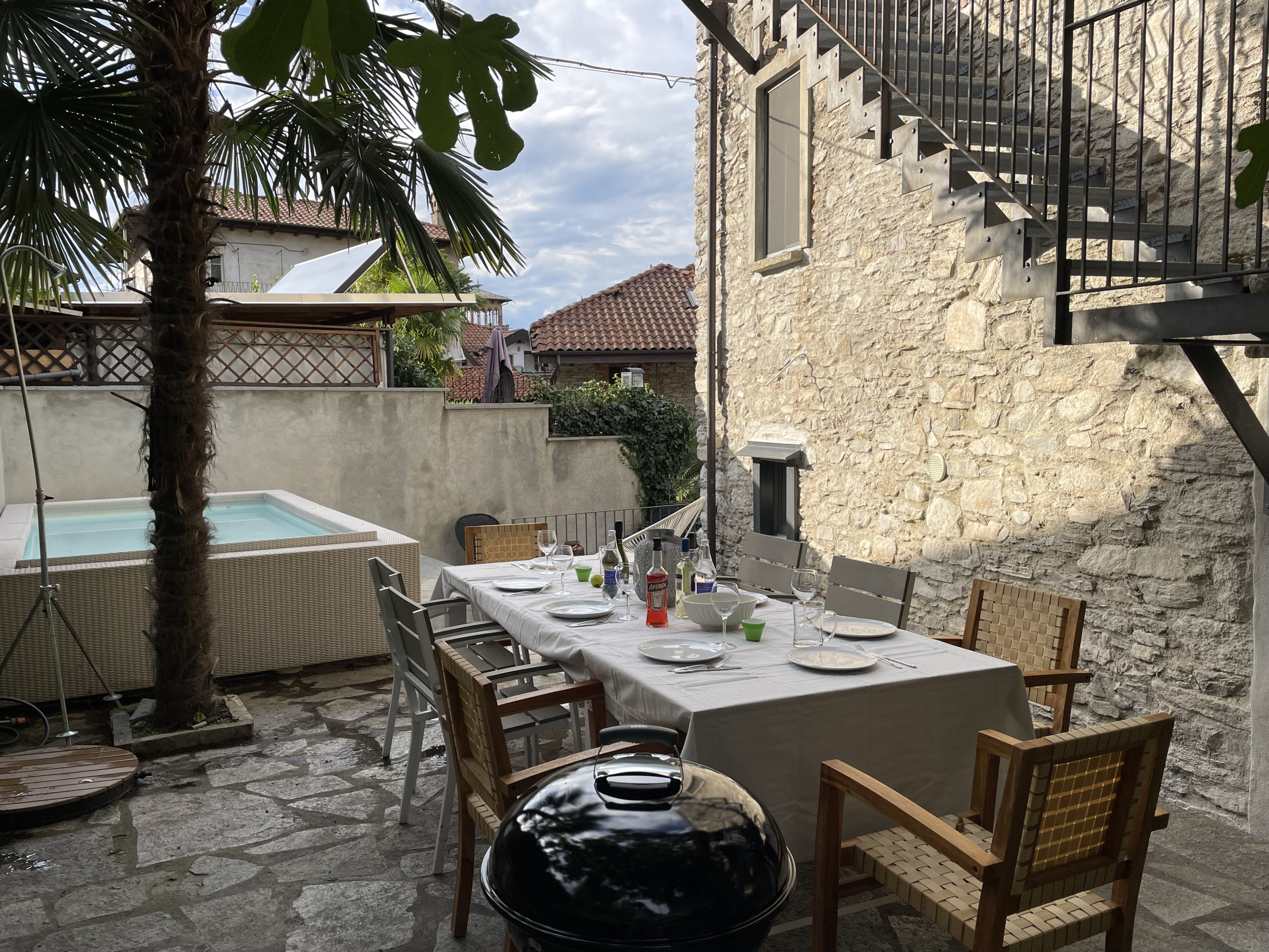 L'appartement Lago Lounge & Pool est situé à Vedasco, sur les premières collines de Stresa, dans une demeure médiévale historique. Le logement se trouve au rez-de-chaussée et est accessible par une cour commune avec deux autres propriétés. L'appartement se distingue par son atmosphère unique, où les éléments d'époque s'intègrent à des solutions modernes. Depuis la cour d'entrée, et donc depuis le rez-de-chaussée, on accède à la zone nuit, où se trouvent deux chambres, chacune avec sa propre salle de bain en suite, toutes deux équipées d'une douche. Par un escalier intérieur pratique, ou directement depuis la cour par un escalier extérieur, on accède à la zone jour, composée d'une grande cuisine avec salle à manger et d'un salon séparé. Le salon donne accès à un petit balcon avec vue sur le lac. La cuisine donne accès à l'espace extérieur d'environ 70 m², où se trouvent la piscine et un grand espace pouvant être utilisé comme salle à manger et espace de détente. Au premier étage, à l'extérieur de la maison, se trouve une salle de bains supplémentaire. Situé au cœur du village historique de Vedasco, l'appartement bénéficie d'un emplacement pratique, avec des parkings publics facilement accessibles à proximité immédiate.