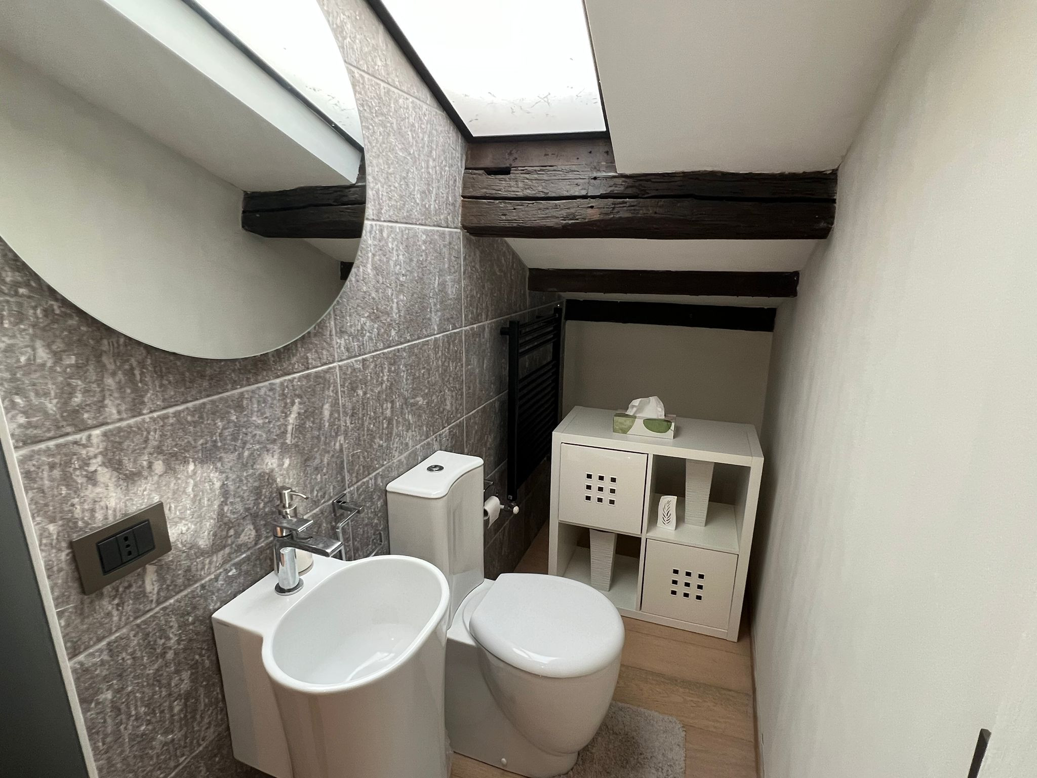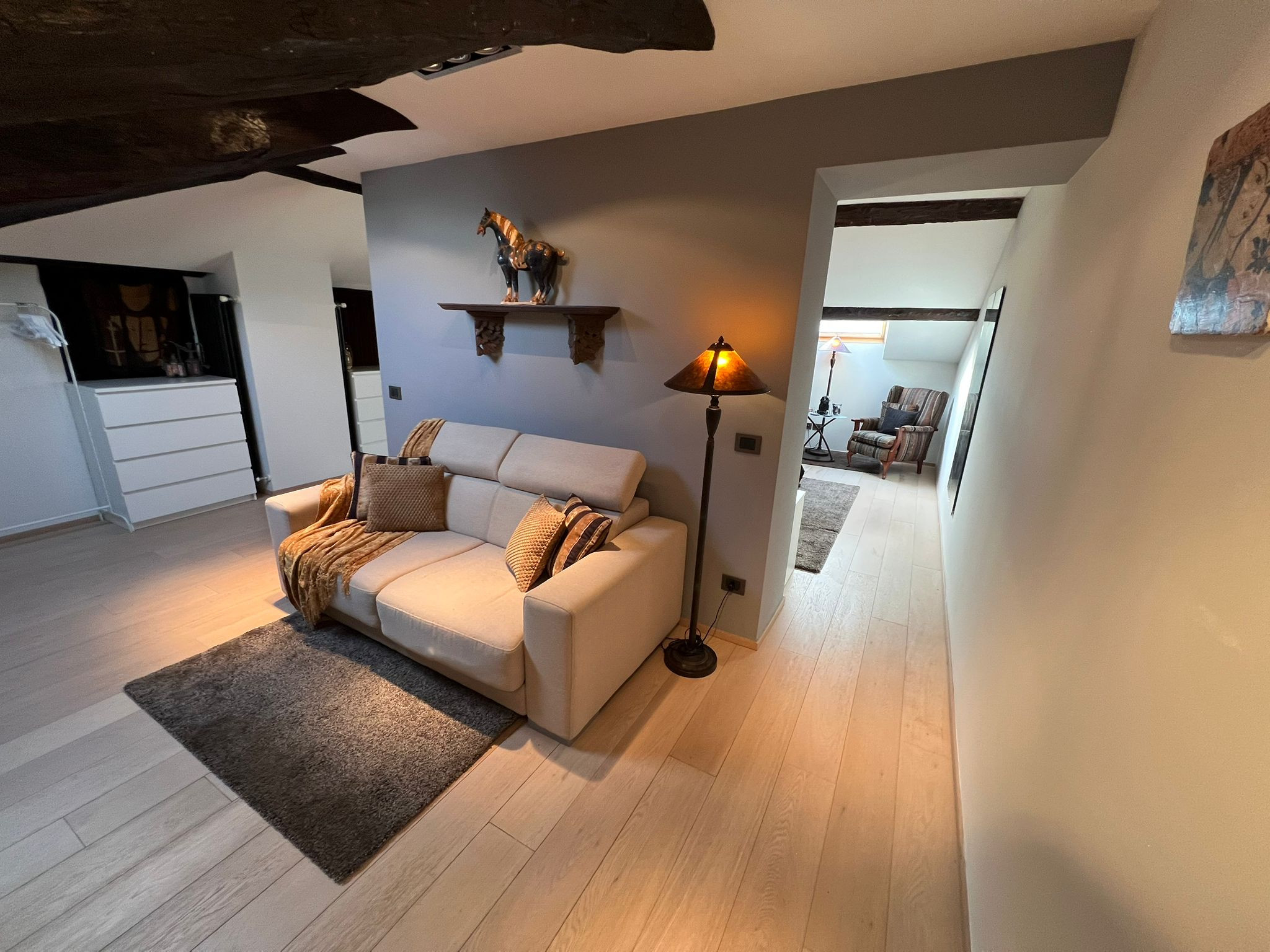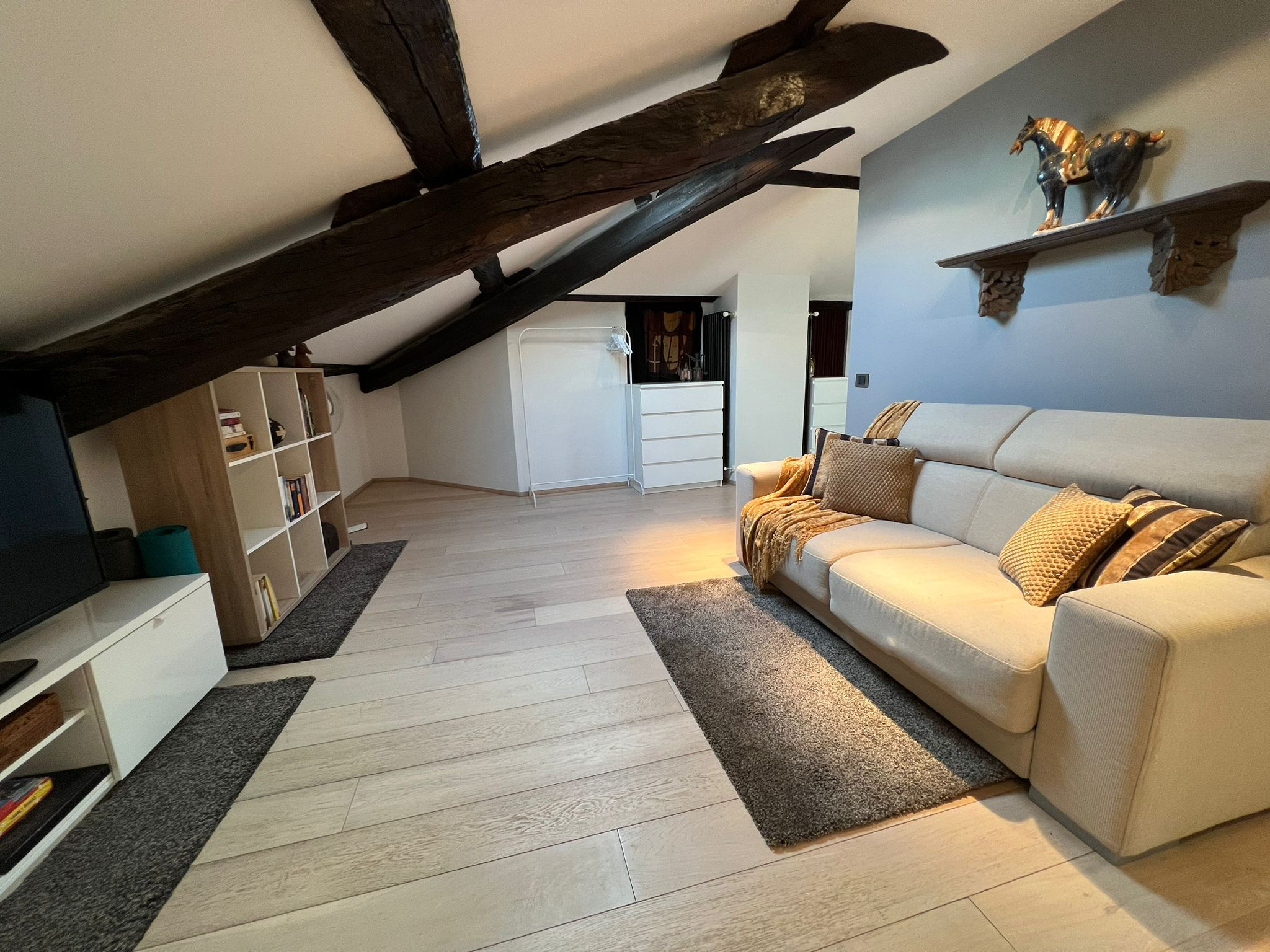 Au deuxième étage d'une maison typique du bord du lac à Verbania Pallanza se trouve l'appartement Charles, un appartement très élégant et confortable qui bénéficie d'une vue magnifique sur le lac et les îles Borromées. Depuis l'entrée, on accède au salon très lumineux, divisé en deux zones. La première avec une télévision et un coin salon avec un canapé convertible en lit pour deux personnes, puis on entre dans la pièce principale qui donne sur le lac, où se trouvent un autre coin salon, une grande table à manger et une cuisine moderne équipée de tous les appareils électroménagers. À côté du salon, il y a un petit balcon avec une table et deux chaises pour prendre un café en admirant la vue sur le lac et les îles. Toujours à cet étage, vous trouverez une première salle de bains avec baignoire/douche hydromassante, une deuxième salle de bains avec une grande douche et un coin buanderie, ainsi qu'une grande chambre double. En montant les escaliers, vous accédez au grenier climatisé où se trouvent une petite salle de bains, une très grande suite avec un lit double et un coin salon avec une armoire, une télévision et un canapé qui peut également être déplié pour devenir un autre lit double. L'appartement est très pratique, situé dans le centre de Pallanza, avec un pass pour garer la voiture dans les parkings à proximité. L'embarcadère se trouve à une minute à pied, tout comme le bord du lac avec ses bars et restaurants et la piste cyclable qui mène à Intra. Un emplacement luxueux et élégant pour des vacances haut de gamme au cœur de la ville.