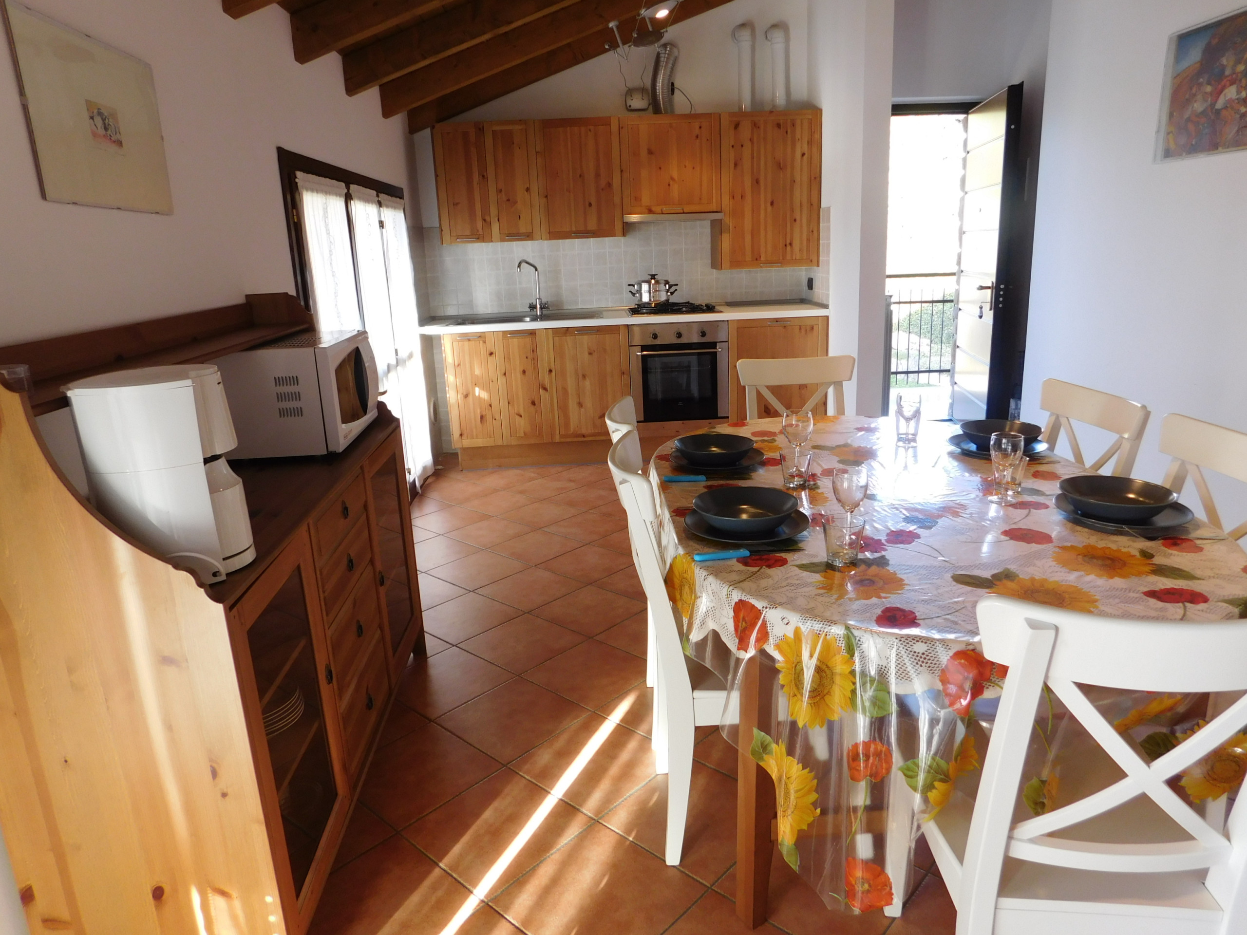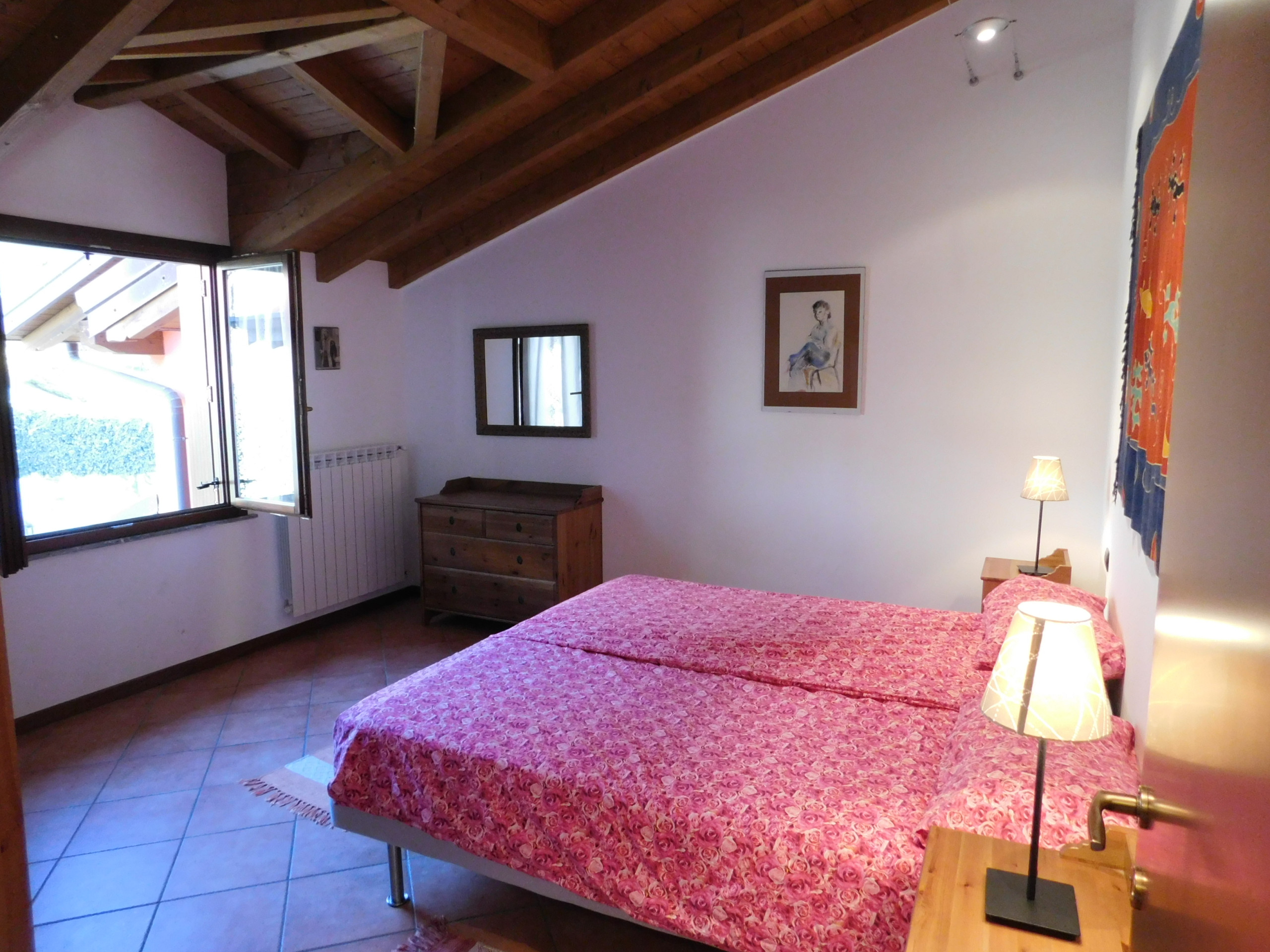 Rosmarino 2 is a tastefully furnished three-room flat located on the first and top floor of a residential complex with garden and swimming pool above Luino (about 8 km away) in Agra, in an idyllic setting. Agra offers the opportunity to take beautiful walks with breathtaking views of Lake Maggiore. The interior consists of a bright living room with sofa bed and satellite TV, a fully equipped kitchenette with dishwasher, a double bedroom, a small bedroom with bunk beds and a modern bathroom with shower and washing machine. Outside, there is a private terrace overlooking the communal garden, ideal for al fresco dining or relaxing, with direct access to a beautiful communal green area with lake views. A few steps away is the communal swimming pool, perfect for cooling off on summer days. The house also has a private enclosed car park. The location is quiet and convenient, close to the main amenities, restaurants and attractions of the lake.