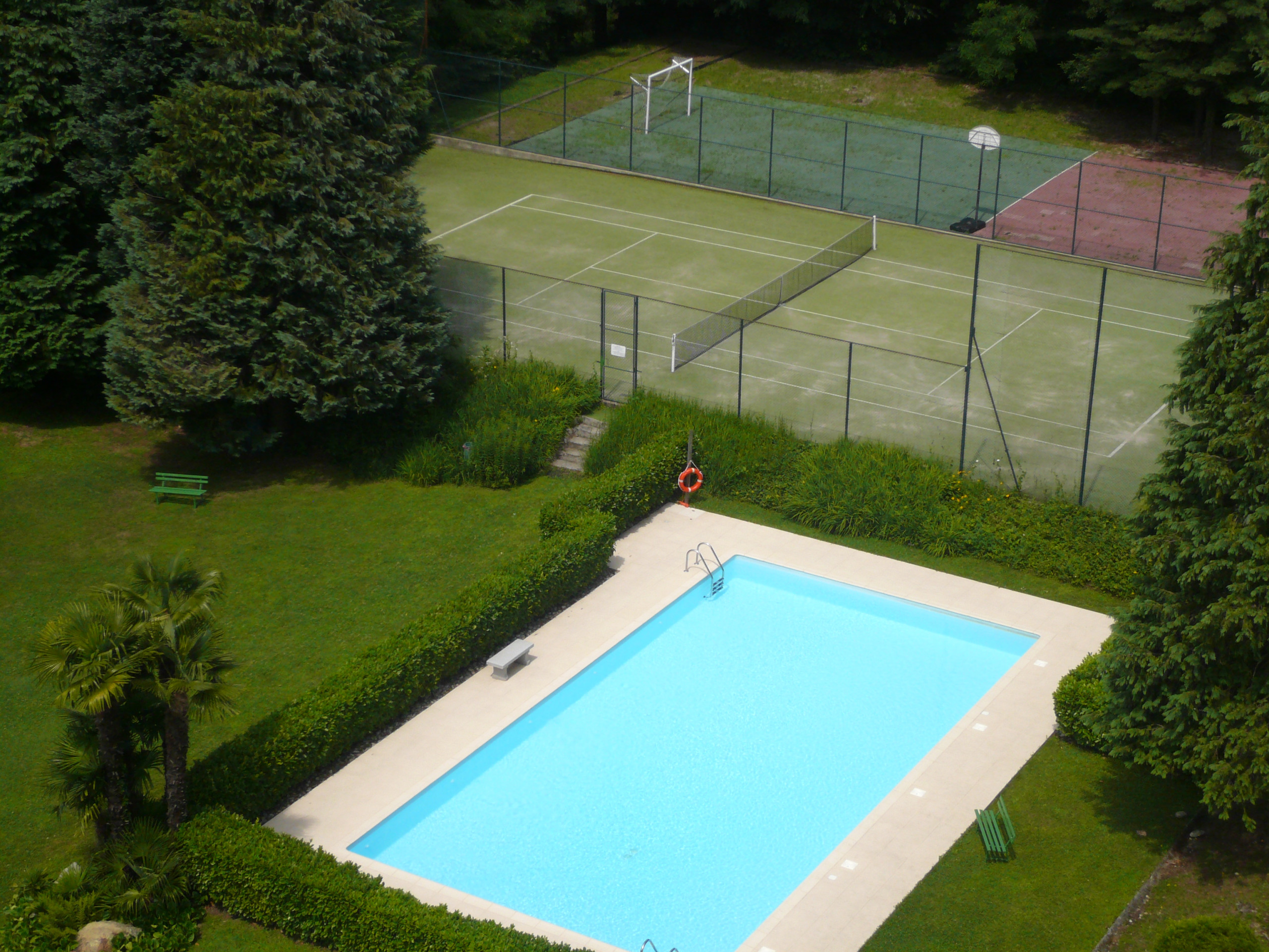 Nicole 1 is a very nice and tastefully furnished apartment located in a residential complex with swimming pool in Germignaga. Shops, the lake and restaurants are easily accessible on foot (around 300 m). The apartment is on the ground floor and has a beautiful view of the lake, has a surface of 65sqm and has a living room with satellite TV, sofa bed and fireplace, kitchen with dishwasher, bathroom with shower, double bedroom and bedroom with two beds. Outside there is a large terrace with a ping-pong table and a barbecue. For animals (no big dogs) there is a cost.