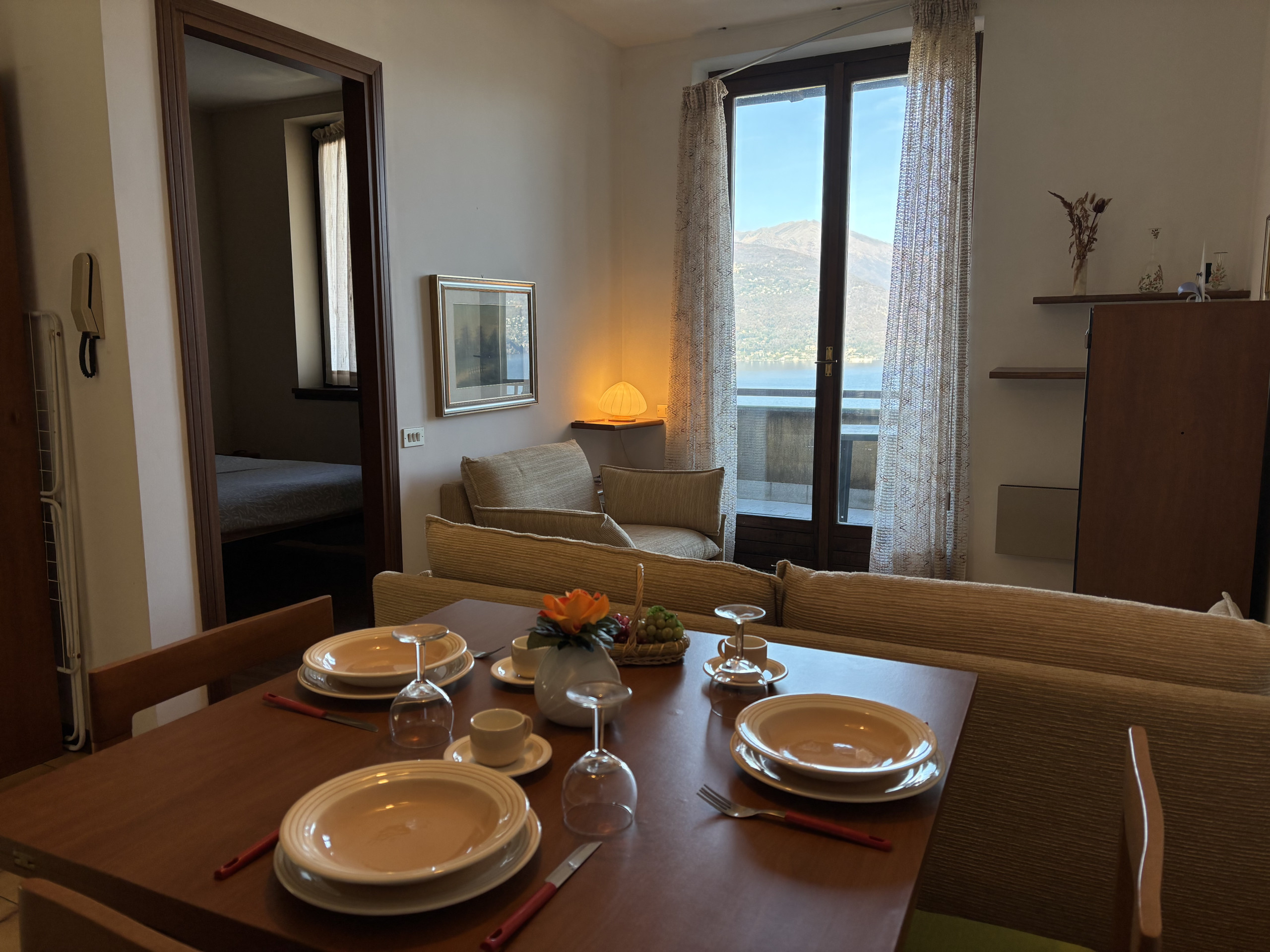 Graziella 1 is a two-room apartment on the first floor measuring approximately 45 square metres with a wonderful lake view in a small complex of terraced houses in a beautiful and quiet panoramic location in Germignaga. The flat has a terrace and consists of a living room with a comfortable single sofa bed, a dining area and a functional kitchenette, a bathroom with a built-in bathtub, and a double bedroom for a total of 2 beds. The outdoor area, consisting, as already mentioned, of a large terrace, includes another one, located at the rear of the house, overlooking the lush surrounding greenery. The house also has satellite TV, a dishwasher and private parking. Pets are allowed for a fee.