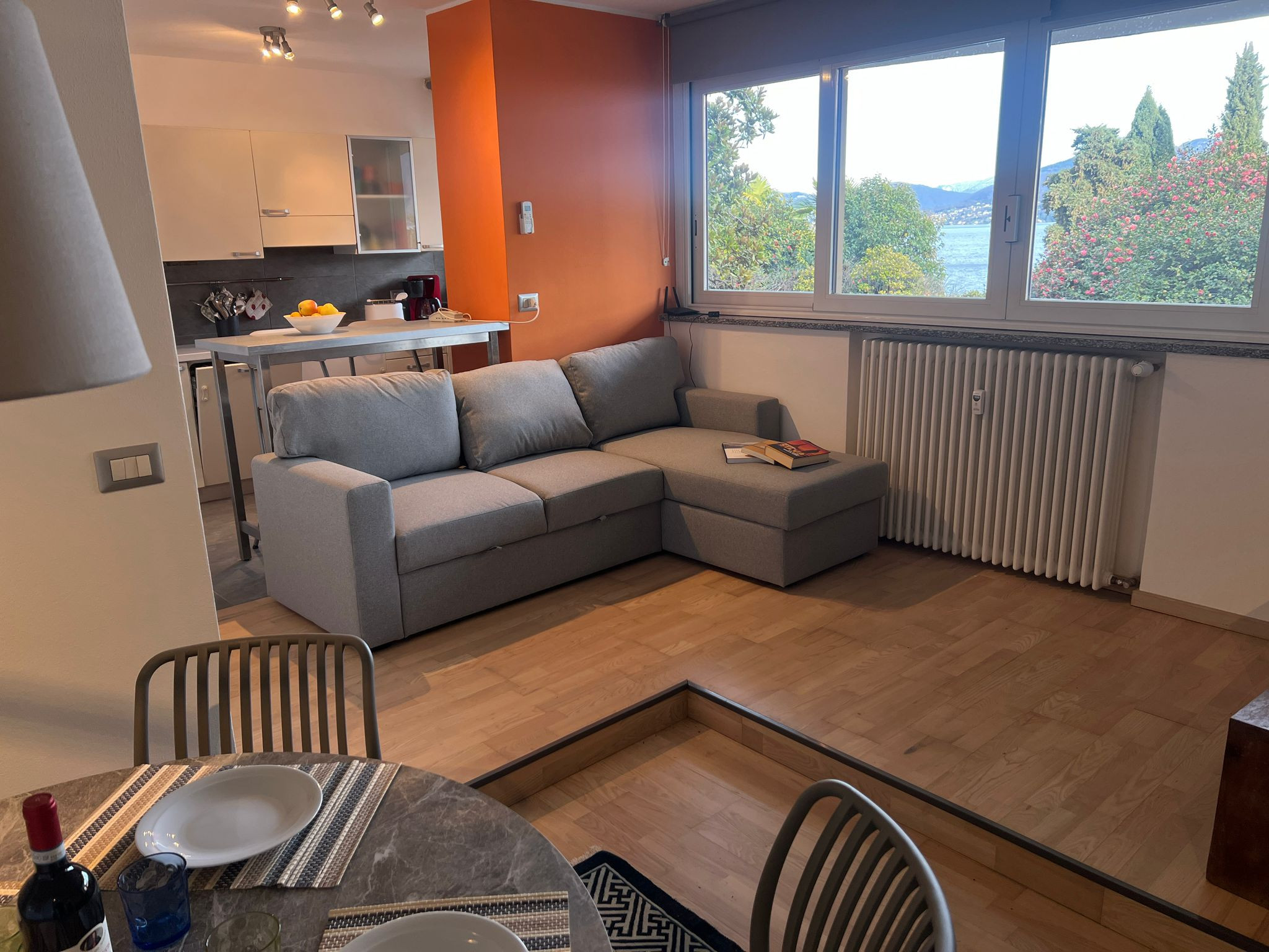 GARDENIA apartment is on the first floor of the building near the entrance to the large PASCIÀ residence in Oggebbio. The bright living room has a well-equipped open kitchen, a dining table, a TV and two sofas that become single beds. From here you can enjoy a beautiful view of the lake. The windows are new with anti-noise glass. The room has a lake view, a double bed and a bunk bed. The modern bathroom is equipped with a shower. At guests' disposal a small balcony near the entrance door of the apartment overlooking the internal courtyard furnished with a table and two chairs. The washing machine is on the ground floor near the reception, for a fee. At the disposal of the guests of the residence there are, in addition to many parking spaces, 2 tennis courts, two swimming pools, a children's playground, a private beach directly on the lake with a dock for boats and a huge park full of flowers. In 5 min. on foot you can reach the small village near the complex with a small supermarket and a restaurant, in just 5 minutes. by car you can reach the nearby towns such as GHIFFA, CANNERO and CANNOBIO.